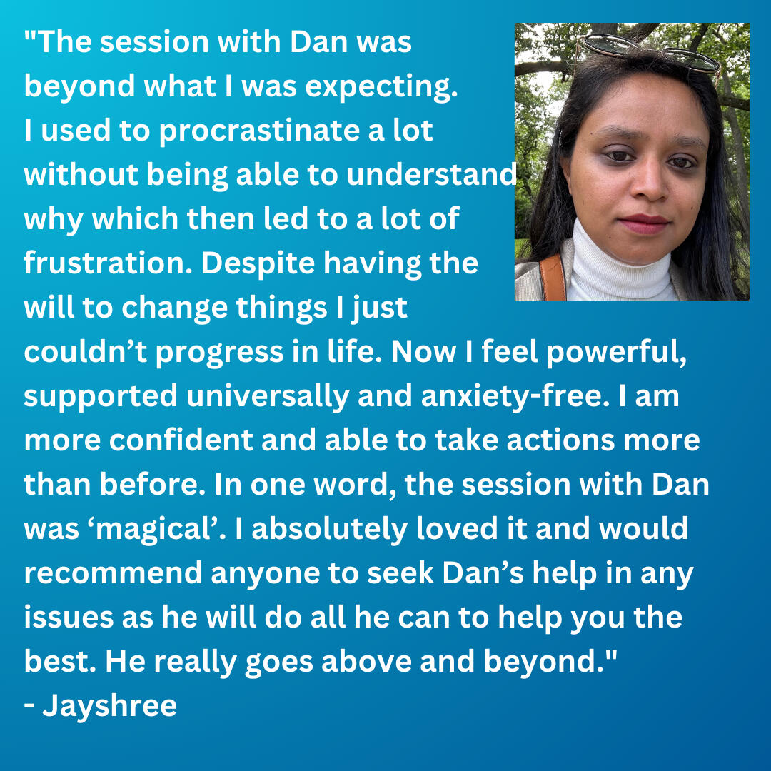 Imagine what your life could be like if you didn't always let fear and self-doubt hold you back from doing the things you know you would really love to do.It is easy to feel discouraged, like we don’t have the time and energy or we don’t have what it takes to start working towards all the things that actually excite and inspire us.Maybe you feel like your best years are behind you, or that you are always going to be stuck in place no matter what you do.It can be hard to know what to do in our fast-paced age of information overload, and when there seem to be so many difficulties that make keeping everything together a real challenge.But in spite of what you may think, every one of us is capable of changing from the inside out to the point where we are no longer paralyzed by fear and insecurity, but instead feel enthusiastic, excited and pumped to pursue all that we really want out of life!You were not meant to live a life of limitation, frustration and struggle. There is enormous energy and potential within you, and you have only to reconnect with it to reclaim the fire and vitality that is yours!There are better, easier ways to become more confident and magnetic for all that you truly desire, and to become the kind of person who is relentlessly determined to pursue a life of true purpose and find great meaning and fulfillment in your life experience.Trained in a variety of powerful modalities including Hypnosis, Neurolinguistic Programming (NLP) and Emotional Freedom Techniques (EFT), I am here to help you reconnect with your deepest inner strength and total belief in your own worth and potential!My aim is to help you undergo rapid shifts in your mindset and state of consciousness so you can finally become the person you were meant to be, and truly rediscover what it means to live your best life!If you are interested in learning more about working with me, be sure to book a completely free discovery call using the Calendly link below.I look forward to connecting and supporting you in living the life you know you were meant to live!Some issues I specialize in working with include: